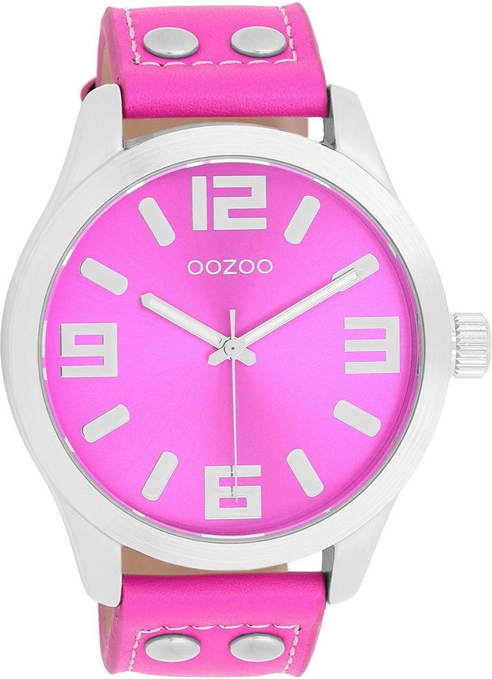 OOZOO Quarzuhr C1074Damenuhr mit pinkem Zifferblatt und Lederarmband