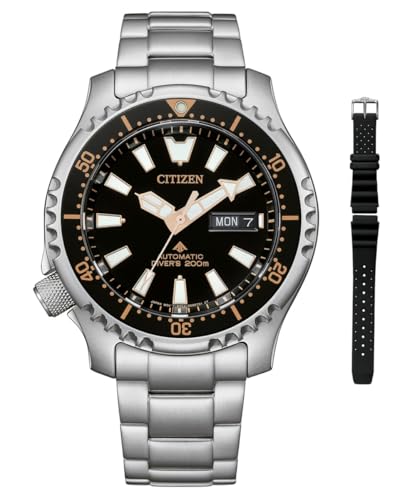 CITIZEN Herrenuhr Automatik Promaster Marine Silberfarben/Schwarz mit Wechselband NY0160-66EEEdelstahl Gehäuse, Tag und Datum Anzeige