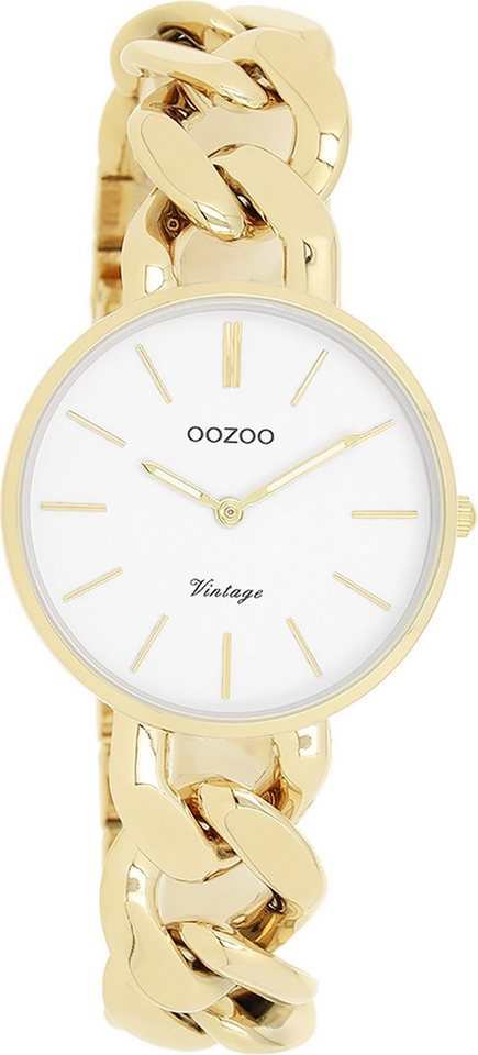 • Die Oozoo Vintage Series Damen Uhr präsentiert sich mit einem stilvollen Metallarmband in Gold und einem mittelgroßen Gehäuse von ca. 32mm