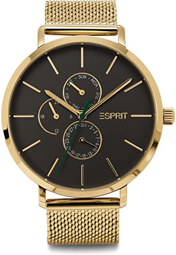 ESPRIT Herren-Uhren Analog Quarz One Size Gelbgold 32023384 - Edelstahl44 mm Gehäusedurchmesser, elegante Produktverpackung
