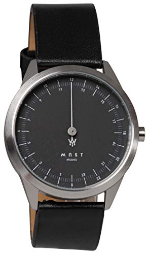 MAST MILANO A24-SL403M.BK.01I Einzeigeruhr für HerrenEdelstahlgehäuse, italienisches Lederband, 5 ATM, schwarz