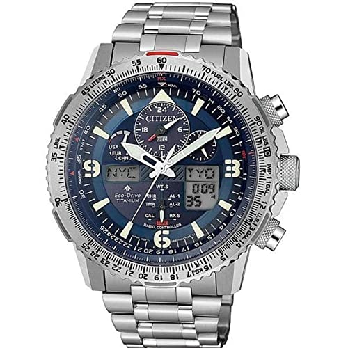 • Die Citizen Herrenuhr Promaster Sky Eco-Drive ist eine hochwertige Armbanduhr mit einem runden Titan-Zifferblatt und digitalem Uhrwerk