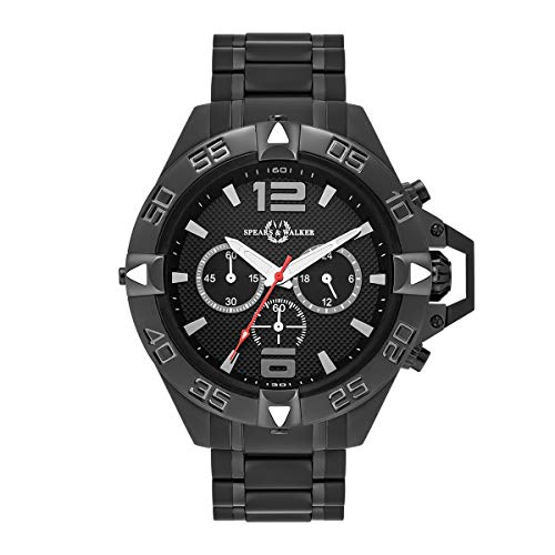 Spears & Walker Herren Uhr analog Japan Quarzwerk mit Edelstahl schwarz Armband und 3 Totalisatoren