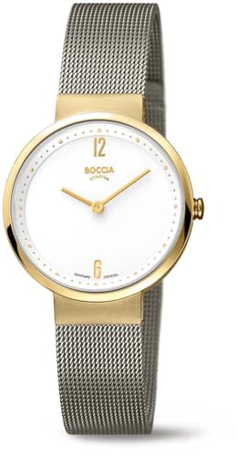 • Diese Damenuhr von Boccia besticht durch ihr grau-goldenes Design