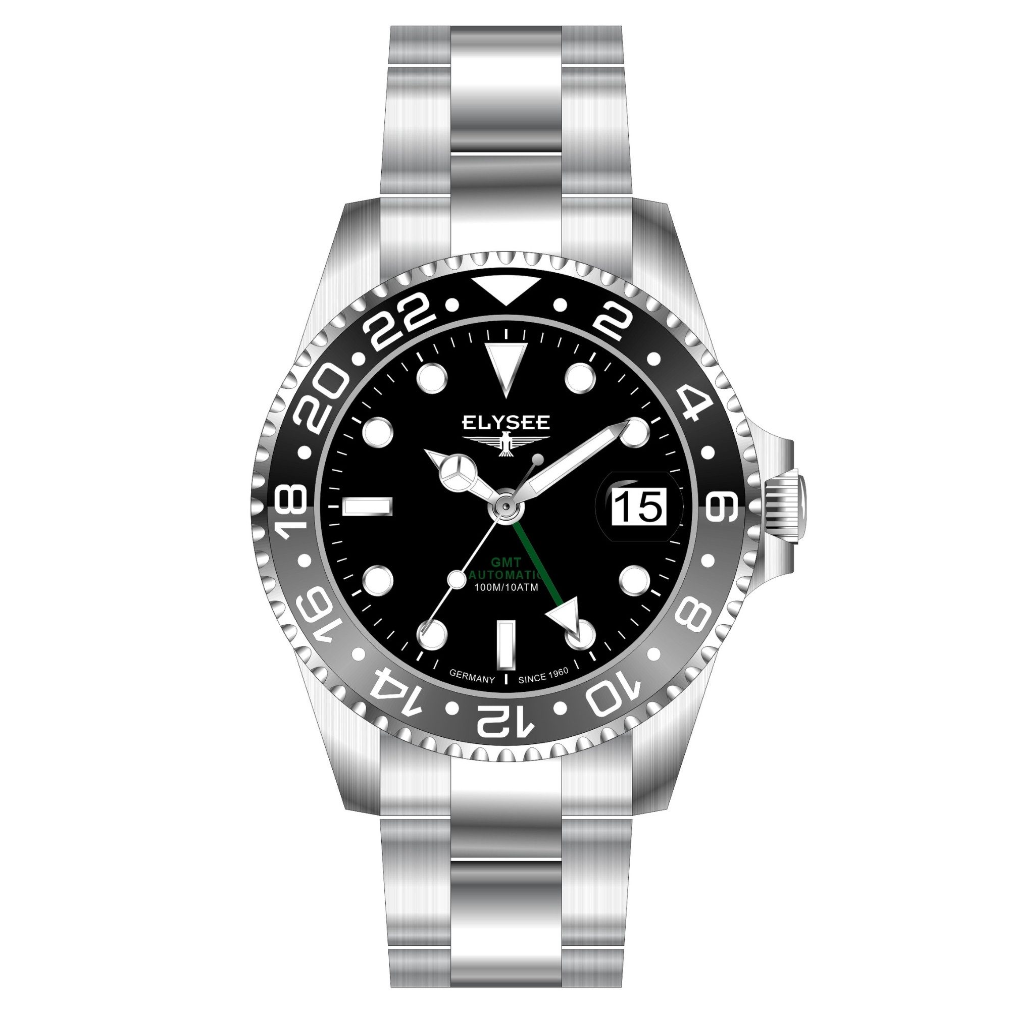 Elysee Automatikuhr GMT AUTOMATIC. Herrenuhr 100% Edelstahl 40.5Datumanzeige