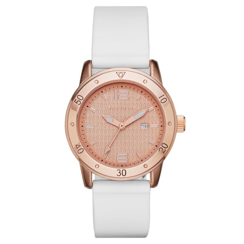 Skechers Damen Analog Quarz Uhr mit Silikon Armband SR605336mm Gehäuse, roségoldenes Zifferblatt, weißer Silikongurt