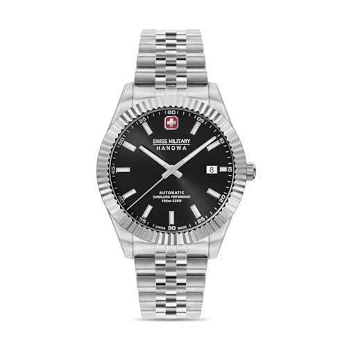 Swiss Military Hanowa Herren Analog Schweizer Automatikwerk Uhr mit Edelstahl Armband SMWGL0002101Schwarz/Silber, Saphirglas, 10 bar wasserdicht