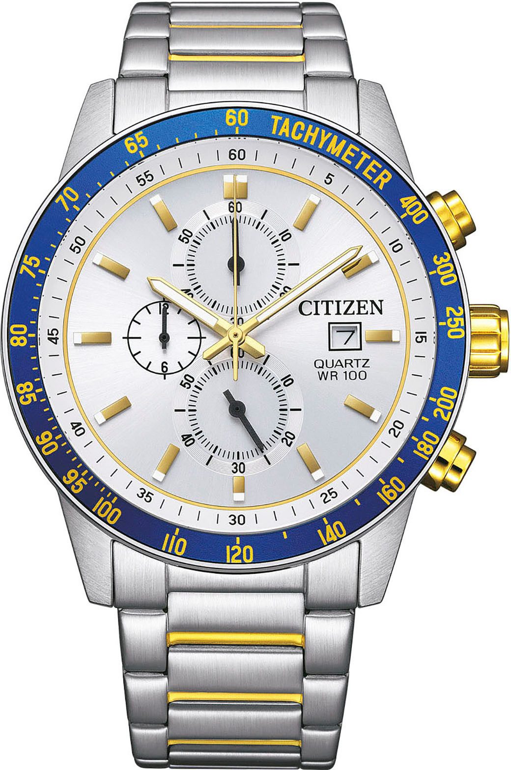 Citizen ChronographHerrenuhr mit Quarzwerk, bis 10bar wasserdicht, Edelstahlarmband