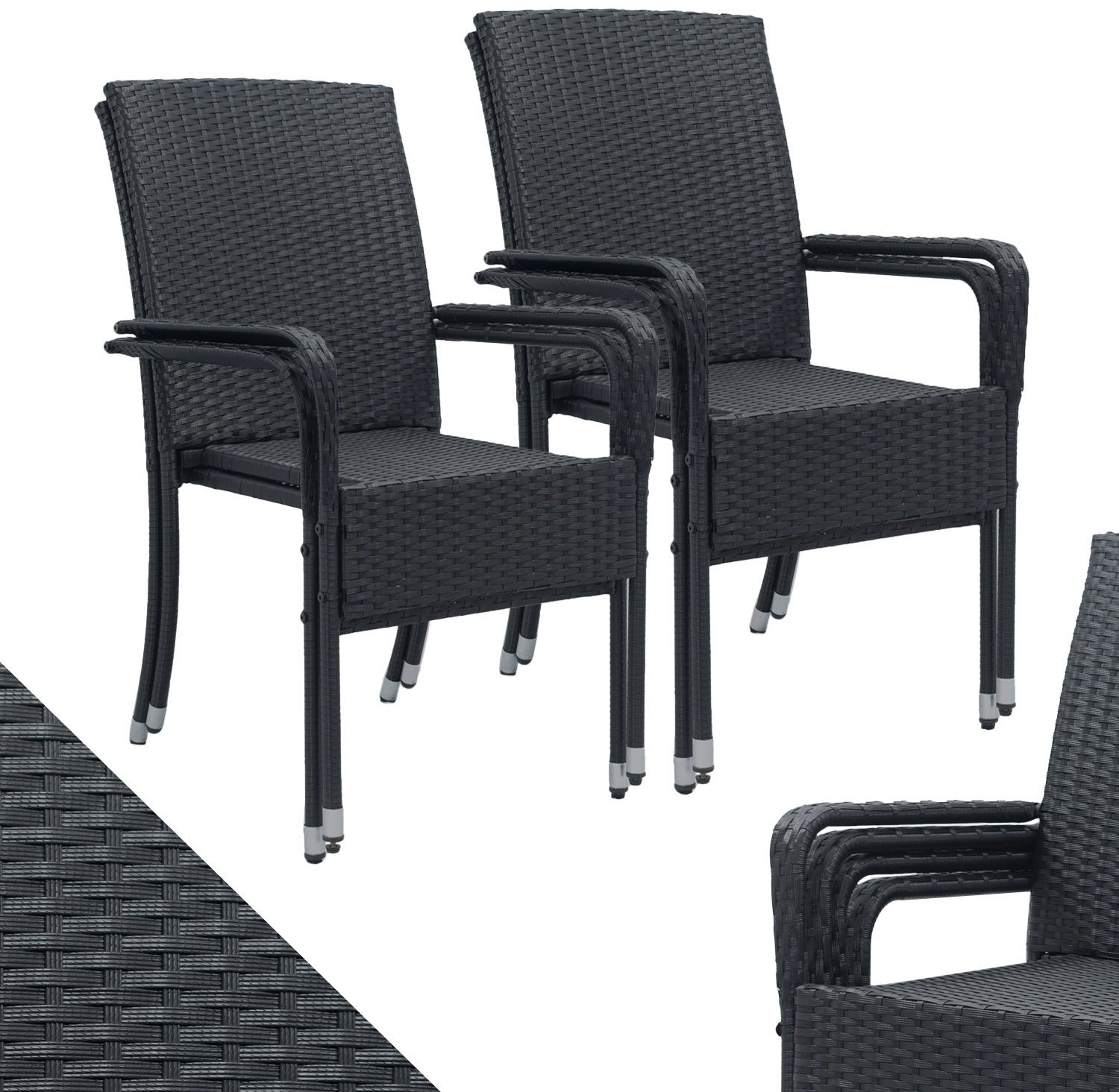 | Name | Juskys Polyrattan Gartenstühle Yoro 4er Set - mit Armlehnen & Rückenlehne - 4 Stühle stapelbar - Rattan Stuhl Garten - Stapelstuhl Schwarz |