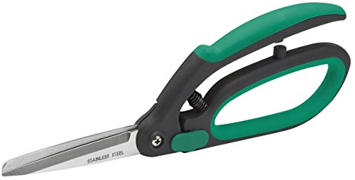 Die Gartenschere überzeugt durch ihre rostfreien Edelstahlklingen, die für eine langanhaltende Schärfe sorgen. Dank der Einhand-Bedienung lässt sich das Werkzeug mühelos mit einer Hand führen, was ein präzises Schneiden ermöglicht. Sie eignet sich ideal für kleinere Schnittarbeiten und bietet somit einen praktischen Nutzen im Garten.