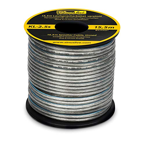 • Das Sinuslive KL-2,5s Lautsprecherkabel ist eine Minispule mit einer Länge von 15,5 Metern und einem Querschnitt von 2x 2,5mm²