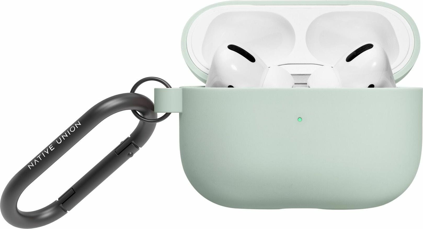 Native Union Leather Case für Apple AirPods 3GKopfhörertasche + Schutzhülle, Grün, Vielseitiges silikonbeschichtetes Etui mit mattschwarzem Karabinerhaken