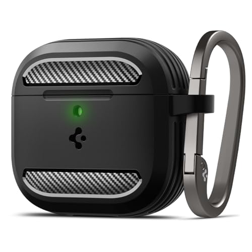 • Die Spigen Rugged Armor Hülle für AirPods 4 bietet zuverlässigen Schutz aus weichem TPU