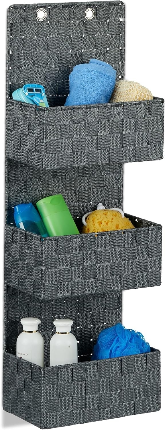 | Name | relaxdays Hängekorb Hängeorganizer Stoff mit 3 Körben, Grau |