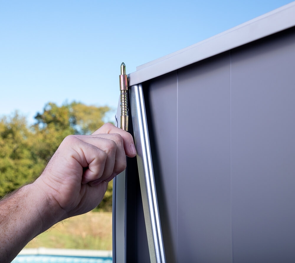 | Beschreibung | Der Spacemaker Metall Gartenschrank Geräteschrank 63 bietet Ihnen die perfekte Lösung zur Aufbewahrung von Gartenutensilien, Polstern und Geräten. Mit Abmessungen von 100 x 191 x 200 cm und einer robusten Konstruktion aus galvanisiertem Stahl ist er witterungsbeständig und langlebig. Die großen, verriegelbaren Flügeltüren ermöglichen einen einfachen Zugang, während das moderne Design in zwei Grautönen einen eleganten Akzent in Ihrem Garten setzt. Der unkomplizierte Aufbau dank vorgefertigter Teile rundet das Gesamtpaket ab. **Highlights** - Ideal zur Aufbewahrung von Polstern, Gartenutensilien und Geräten - Große, verriegelbare Doppeltür - Griffe aus gebürstetem Metall - Robuste, witterungsbeständige Konstruktion aus galvanisiertem Stahl - Mehrfarbige Gestaltung in zwei Grautönen **Produkteigenschaften** - Abmessungen: 100 x 191 x 200 cm - Material: galvanisierter Stahl - Farbe: Lichtgrau - Wandhöhe von 1,83 m - Vorgefertigte, vorgebohrte Teile für einen unkomplizierten Aufbau |