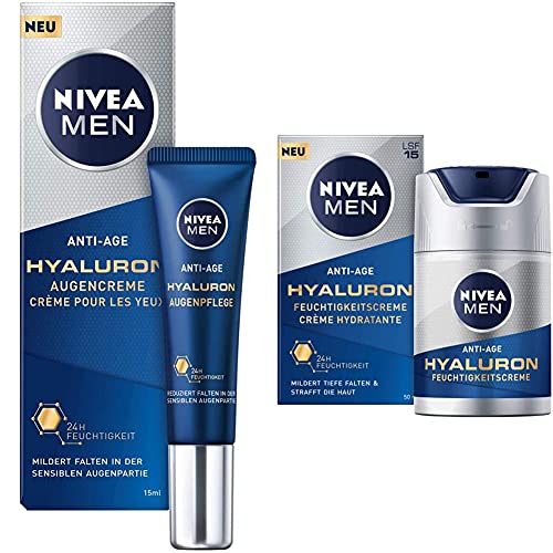 Die Nivea Men Anti Age Hyaluron Augencreme ist eine speziell entwickelte Pflege für die empfindliche Hautpartie um die Augen herum. Dank der leichten Textur zieht die Creme schnell ein und hinterlässt keinen fettigen Film auf der Haut. Der angenehme Duft sorgt für ein frisches Gefühl und gibt einen Wachkick am Morgen.