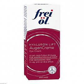 Die Frei Öl Augen- & Lippenpflege ANTI AGE HYALURON LIFT Augen-Creme bietet frische und gepflegte Haut dank ihrer leichten und weichen Textur. Der angenehme Duft erfrischt die Haut um die Augen, ohne dabei ein Brennen in den Augen zu verursachen.