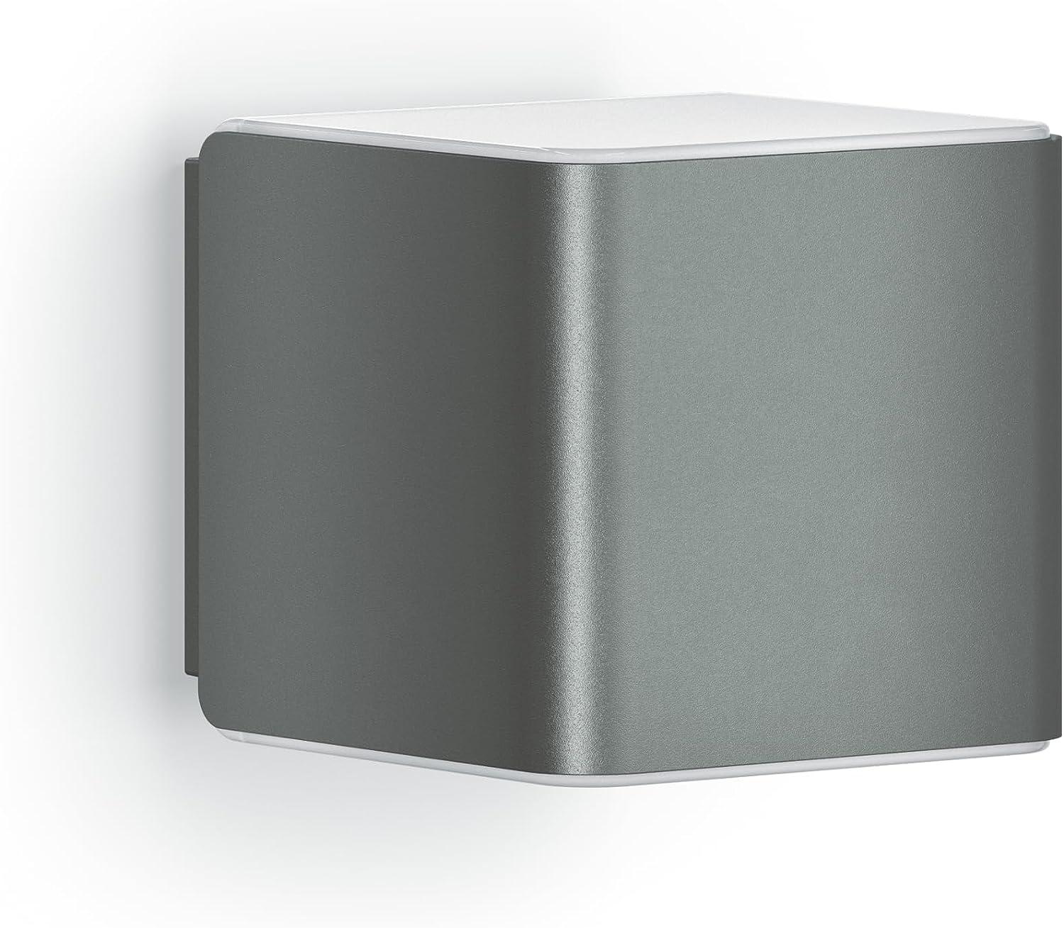 Steinel Außenleuchte | Leuchten-Serie | Sensor-LED-Außenleuchte L 840 SC | Anthrazit Digital. Vernetzt. Intelligent. Die Steinel Cube-Serie besticht durch edle Optik und adelt jedes Haus. Mit unsichtbarem 160° iHF-Sensor (5 m Reichweite), der nur auf menschliche Bewegung anspricht. Nachtlichtfunktion, Softlichtstart und 4 Stunden Dauerlicht (3000 K). Kabellose Vernetzung per Bluetooth, individuelle Einstellungen per STEINEL App. Drei Designvarianten. Erhältlich in Anthrazit oder Silber. - Länge: 134 mm - Breite: 110 mm - Höhe: 110 mm - Montagehöhe: max. 2,5 m - Farbe: Anthrazit - Material: Kunststoff, Kunststoff opal - Sensortechnologie: iHF (Intelligente Hochfrequenz-Technik) - mit Bewegungsmelder - Einstellungen via Bluetooth, App, Smartphone - Technik: LED - Leistung: 9,1 W - Spannung: 220 - 240 V - Farbtemperatur: 3000 K - Lichtstrom: 319 lm - Farbwiedergabeindex: 80-89 - Erfassungswinkel: 160 ° - Öffnungswinkel: 160 ° - Schutzart: IP44 - Schutzklasse II - Umgebungstemperatur: -20 – 40 °C Außenleuchten: Egal ob stilvolle Beleuchtung eines Restaurants oder die Inszenierung einer markanten Hausfassade eines Privathauses – Außenleuchten von STEINEL werden Ihr Herz erobern und Ihr Projekt ins rechte Licht rücken. Als trendbewusster Hausbesitzer setzen Sie aber nicht nur auf Funktionalität und auf Modelle mit Top-Design und dekorativem Licht sondern auch auf robuste Verarbeitung und wetterfesten Materialien! All das bietet STEINEL. Das moderne Steinel-Leuchten Aussehen und ihr großer einstellbarer Erfassungsbereich machen sie zu einem echten Highlight an jeder Hauswand und mit dieser Lampe sparen Sie dabei auch noch jede Menge Energie & Geld!