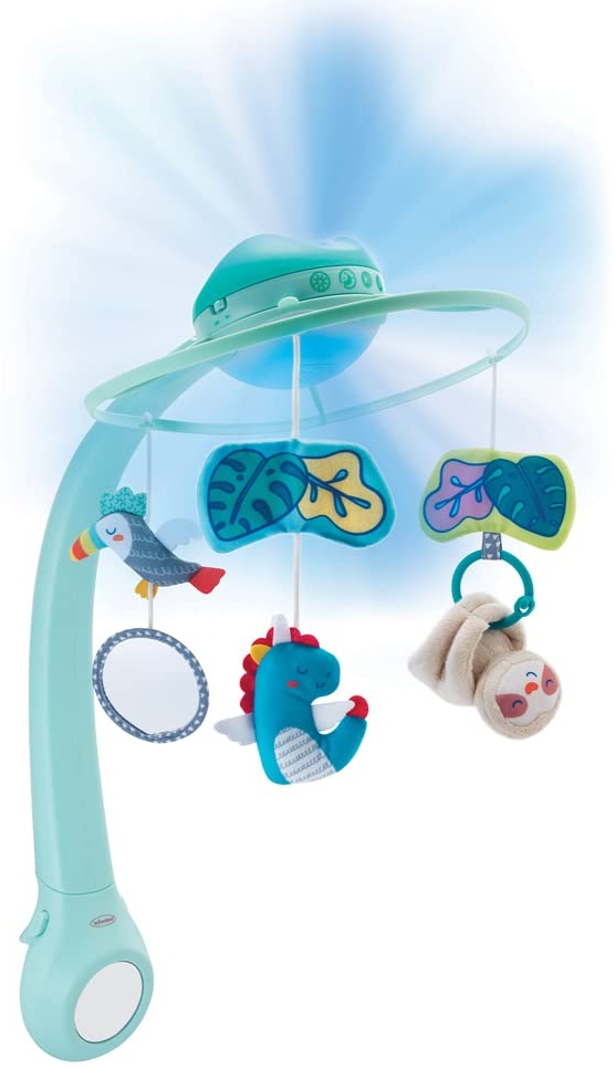 Design: Die Naturgeräusche zum Einschlafen helfen Babys und Kleinkindern, sich nachts sicher zu fühlen, Mobile fürs Babybett mit automatischer Abschaltautomatik und Schlafmodus, um das Baby in den Schlaf zu wiegen, sowie einem einstellbaren Aufwachmodus, der Tageslicht simuliert Förderung der Entwicklung: Das Baby wird es genießen, die liebenswerten Tiere zu sehen, die über ihm schweben, mit sanftem Licht und beruhigender Musik. Putzige Figuren, die das Baby zur Verfolgung mit den Augen anregen, mit Spiegel, Mobile mit Musik, Spiegel, Projektor und Abschaltautomatik zum Einschlafen Anpassungsfähigkeit: Anpassbares, mitwachsendes Projektor-Mobile zum Aufhängen. Je nach Alter gibt es 3 Möglichkeiten, das Baby zu beschäftigen: als Mobile mit Musik und Licht oder als Mobile mit Projektor, entweder fürs Anbringen am Kinderbett oder am Tisch. Abnehmbares Faultier für Spaß unterwegs. Weitere Funktionen: Für einen guten Morgen und eine ruhige Nacht verfügt das Infantino 3 in 1-Mobile mit Musik und Licht über Lautstärkeregler mit Stummschaltfunktion, mehrfarbige Projektionslichtshows und Nachtlicht, 3 x AAA-Batterien erforderlich Mit Liebe entworfen. Wir von Infantino lieben Kinder und möchten Mütter und Väter unterstützen. Wir entwerfen Produkte, die die kindliche Entwicklung begleiten und Freude bereiten. Glückliche Eltern und Babys liegen uns am Herzen