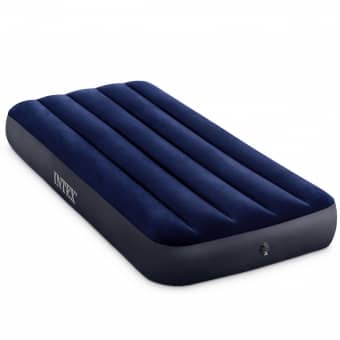 Luftbett „Classic Downy Airbed“ Das ca. 76 x 191 x 25 cm große Luftbett „Classic Downy Airbed“ Cot-Size aus der Dura-Beam® Standard Serie von Intex ist die perfekte Schlaflösung fürs Camping oder für Gäste. Die innovative, patentierte Fiber-Tech™ Technologie verbessert mittels leichter und hochfester Fasern die innere Standardkonstruktion, dadurch schafft sie eine ausgezeichnete Widerstandsfähigkeit und eine enorme Bequemlichkeit. Die Wellenbalkenkonstruktion schafft eine einheitliche Liegefläche, die Ihnen eine gute Nachtruhe garantiert, egal wo Sie sind. Die qualitätsgeprüfte, beflockte Oberseite sowie die Matratzenhöhe von 25 cm ermöglichen ein absolut angenehmes Relaxen und erholsames Schlafen. Ein großes 2-in-1-Ventil mit einer extraweiten Öffnung sorgt für ein schnelles Aufblasen und Ablassen der Luft und ist serienmäßig integriert. Max. Gewichtsbelastung: 136 kg. Weitere Informationen zum Luftbett: Lieferumfang: 1 x Luftbett Classic Downy Airbed Farbe: blau Plush geflockte Oberfläche für weiches Liegen Fiber-Tech Konstruktion Innerhalb von 5 Minuten aufgepumpt Cot-Size Max. Gewichtsbelastung: 136 kg Maße: ca. 76 x 191 x 25 cm Hersteller: Intex Hersteller-Artikelnr. : 64756
