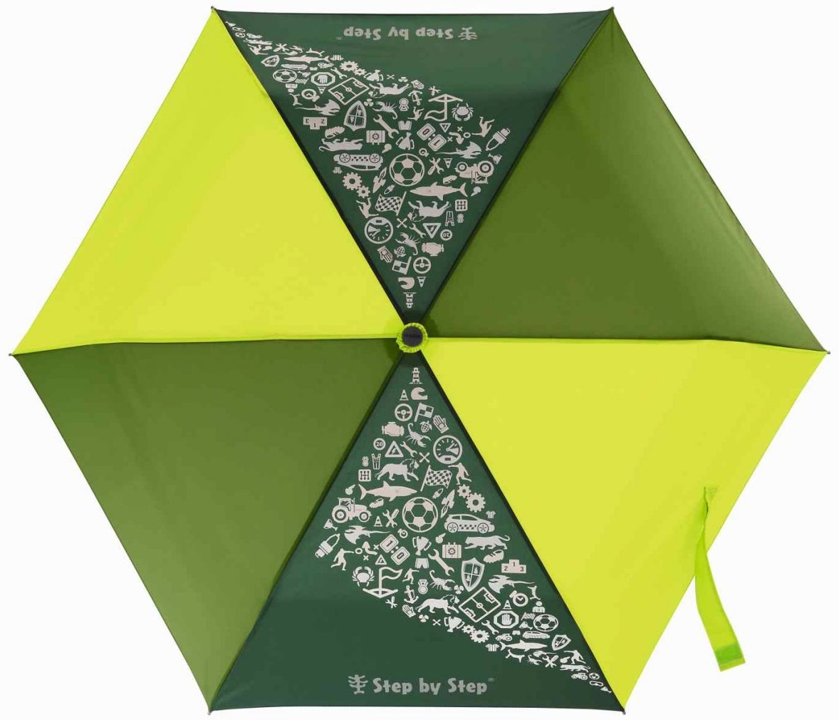 Step by Step Regenschirm, Lime, Magic Rain Effect Mit diesem Regenschirm macht Regen Spaß. Dank des coolen Magic Rain Effects ändern die aufgedruckten Motive ihre Farbe, sobald sie nass werden. So wird aus dem einfachen Kinderregenschirm ein magisches Accessoire , das gerne zur Schule mitgenommen wird. Zusammengeklappt und gefaltet schrumpft der Schirm auf eine handliche Größe zusammen, die in die Seitentaschen des Step by Step Schulranzens passt. Hierzu wird eine nützliche Transporthülle mitgeliefert. Als Produkt der Marke Doppler® ist der Regenschirm hochwertig und robust. Er lässt sich manuell aufschieben und schließen. In nassem Zustand sollte der Schirm aufgespannt trocknen, bis alle Motive wieder weiß sind. Jederzeit einsatzbereit wappnet der Regenschirm von Step by Step Ihr Kind für jeden Regenschauer. Details : Regenschirm mit Schirm-Hülle Schutz vor Nasswerden bei Regenwetter Verspiele Motive auf dem Regenschirm Magic Rain Effect – Motive ändern die Farbe, sobald sie nass werden Regenschirm aufgespannt trocknen lassen, bis alle Motive wieder weiß sind Schirm der Marke Doppler® mit Step by Step Aufdruck Technische Daten: Durchmesser Schirm: 100 cm Max. Länge: 50 cm Min. Länge: 22,5 cm Material: Polyester