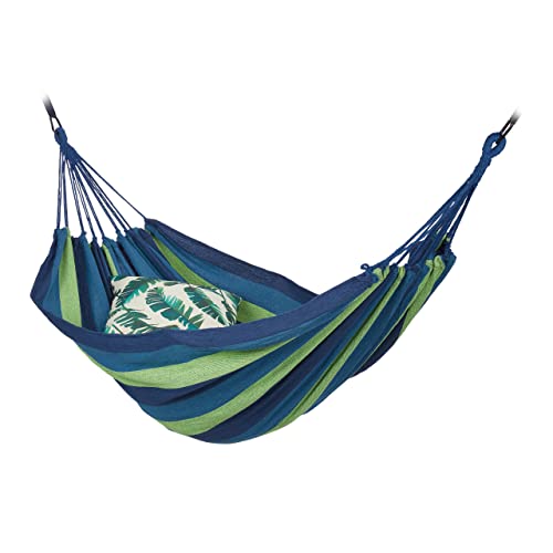 Relaxdays Hängematte aus Baumwollemit Befestigung & Beutel, BxT: 240 x 150 cm, In- & Outdoor, bis 200 kg, blau-grün