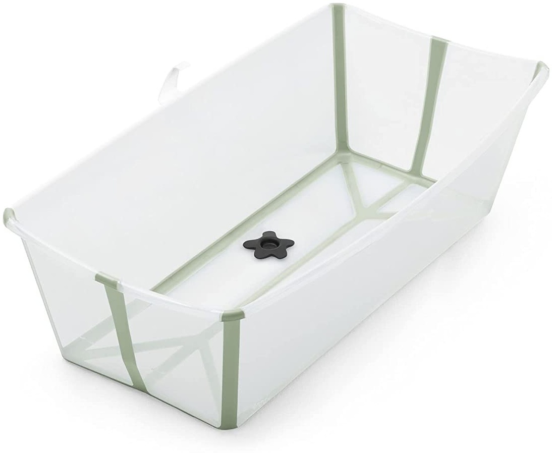 Stokke® Flexi Bath® XL Transparant Green: Das Stokke® Flexi Bath® XL ist für Kinder von 0 bis 6 Jahren geeignet. Bis dein Kind 8 Monate alt ist oder 8 kg wiegt, kann man den separat erhältlichen Newborn Support verwenden. Einzigartig an diesem Bad ist die Möglichkeit, das Bad mit einer einfachen Bewegung in ein nur 10 cm breites Paket zu falten. Diese platzsparende Badewanne eignet sich somit ideal für unterwegs oder falls du nur wenig Stauraum hast. Die Badewanne hat einen rutschfesten Boden und einen Stöpsel, so dass das Wasser einfach ablaufen kann. Das Flexi Bath® von Stokke® ist aus Polypropylen und thermoplastischen Elastomeren hergestellt. Die Badewanne hat ein Fassungsvermögen von 69 Litern. Eigenschaften: - Geeignet für Kinder von der Geburt bis zum Alter von 6 Jahren, - XL-Variante 25% größer und breiter als das gewöhnliche Flexi Bath, - Newborn Support für Babys (0-8 Monate) separat erhältlich, - Zusammenklappbar und platzsparend, - Rutschfester Boden und Stöpsel zum Ablaufen des Wassers, - Nur für Seife und Shampoo geeignet (nicht für Öl), - Praktisch für zuhause und unterwegs.