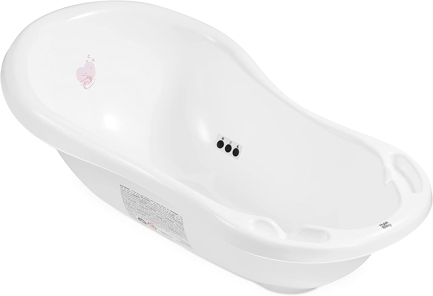 | Name | Babybadewanne für Neugeborene und Babys bis 12 Monate, mit Stöpsel und Antirutschmatte, aus BPA-freiem Plastik, Länge: 84cm, Farbe: Weiß, Motiv:Hug Me, Marke:Hylat Baby |