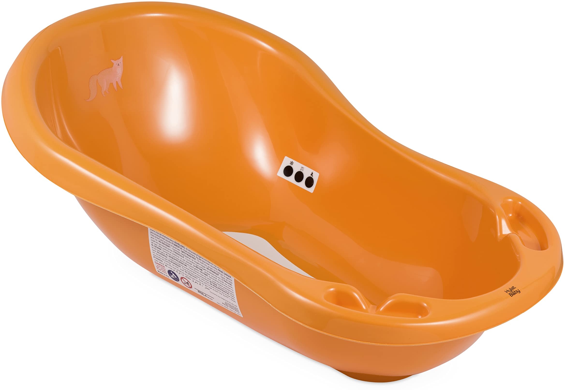| Name | Babybadewanne für Neugeborene und Babys bis 12 Monate, mit Stöpsel und Antirutschmatte, aus BPA-freiem Plastik, Länge: 84cm, Farbe: orange, Motiv:Fox, Marke:Hylat Baby |