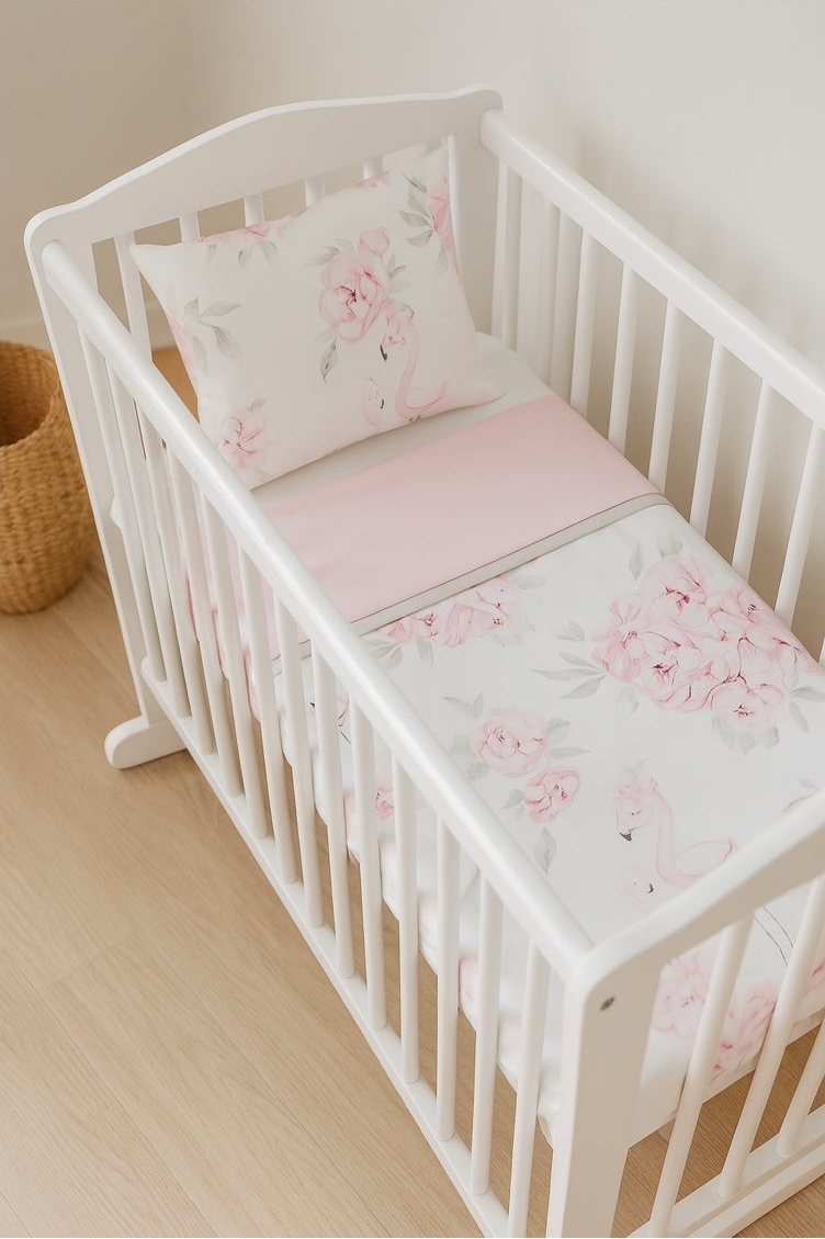 | Name | Baby Bettwäsche Set 4-teilig – Flamingo & Pfingstrose |