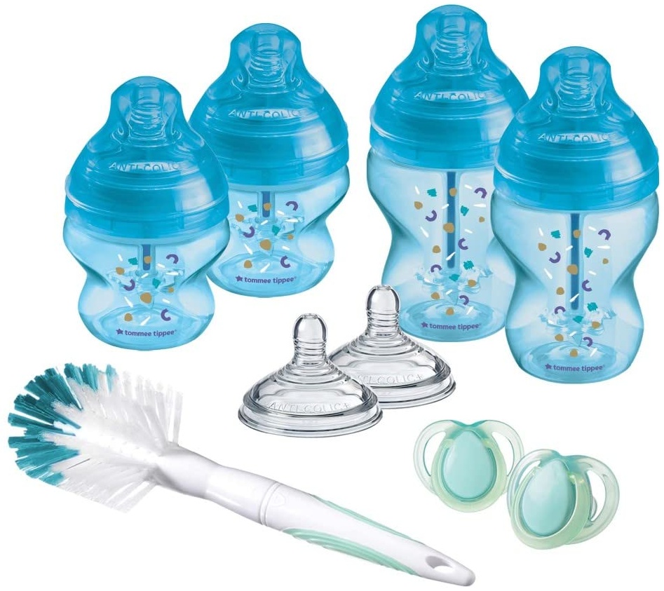 | Name | Tommee Tippee Anti-Kolik-Babyflaschen Starterset, Natürlich geformter Trinksauger und Spezielles Anti-Kolik-Entlüftungssystem, Verschiedene Größen, Blau |