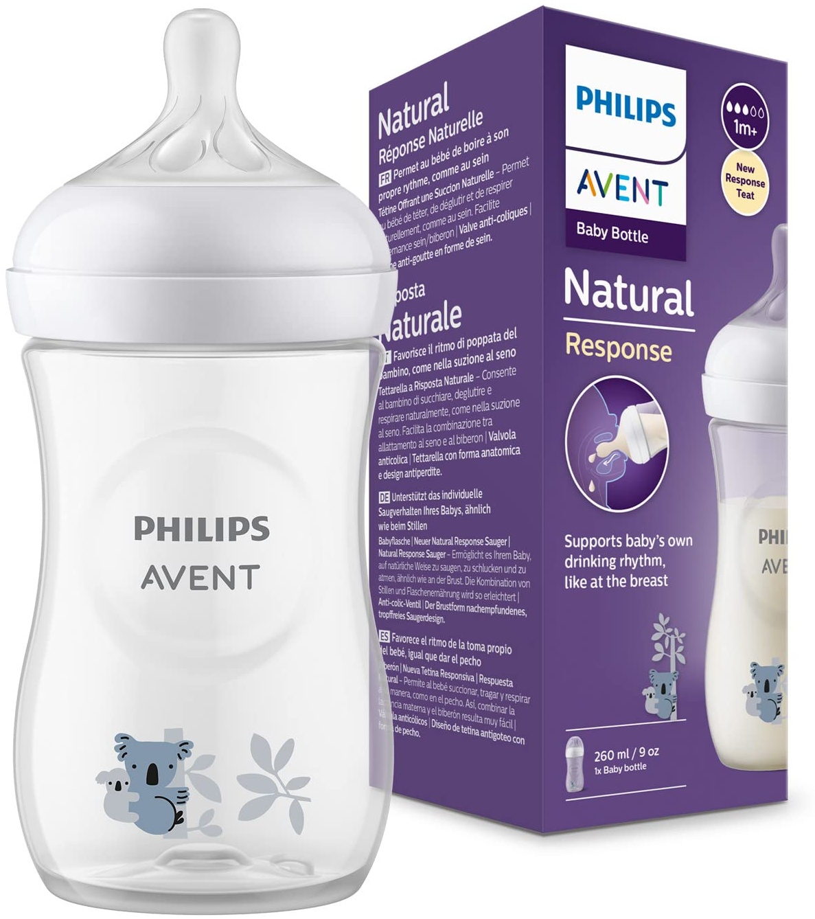 | Name | Philips Avent Natural Response Babyflasche – 260 ml Baby-Milchflasche, BPA-frei für Babys ab 1 Monat, Koala-Muster (Modell SCY903/67) |