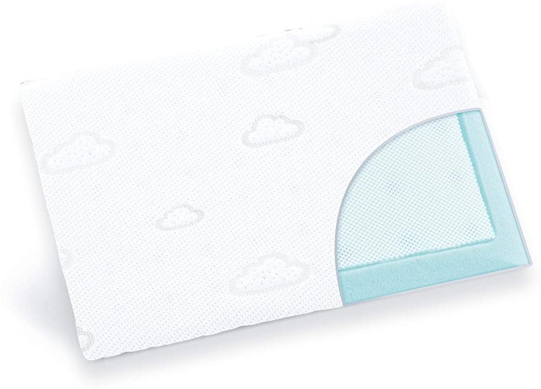 Träumeland 'Care Wolke' Babykopfkissen 40 x 60 cm bietet optimalen Komfort für Ihr Baby. Der visco-elastische Waterlily Naturschaum passt sich perfekt an Druck und Wärme an und unterstützt die natürliche Kopfform. Der 3D-Luftpolster sorgt für eine hervorragende Luftzirkulation, vermindert Schwitzen und fördert die freie Atmung. Der weiche sleep safety Bezug aus natürlichen Tencel®-Fasern ist hautfreundlich und reguliert die Feuchtigkeit, um ein gesundes Schlafklima zu schaffen. **Highlights** - visco-elastischer Naturschaum für ausgezeichnete Druckentlastung - kombiniert mit einem 3D-Luftpolster zur optimalen Luftzirkulation - anschmiegsamer Tencel®-Bezug - Bezug waschbar bis 60 °C - schadstoffgeprüft nach Öko-Tex Standard 100 **Produkteigenschaften** - Maße: 40 x 60 cm - Trocknung mit reduzierter thermischer Behandlung - FKT - medizinisch getestet und schadstoffgeprüft - für Allergiker geeignet - made in Austria
