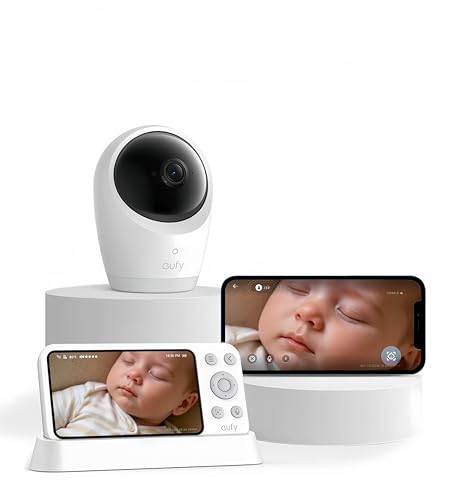 eufy Security Babyphone mit Kamera E21Hybrid-WLAN/Offline-Modus, 4K UHD, 5-Zoll-Display, Schwenk- & Neigefunktion, 8-Fach Zoom, tragbare Kamera mit Akku