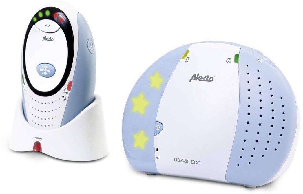 | Name | Alecto DBX-85 Digitale Eco DECT Babyphone (100% störungsfrei), hohe Reichweite von bis zu 300 Meter, Rücksprechfunktion, LED-Geräuschanzeige und Nachtlicht |