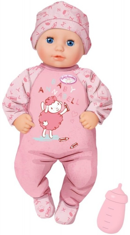 Die kleine Annabell in 36cm weiß schon in etwa, was sie werden möchte, wenn sie groß ist: Schriftstellerin – oder vielleicht Lehrerin. Deshalb hat das Schaf auf ihrem rosa Strampler den Stift in der Hand. Die Füßchen, die Ärmeln und die Mütze sind über und über mit Buchstaben verziert. Das ABC-Outfit ist im easy fit Style gefertigt und kann sogar von kleinsten Kinderhänden einfach an- und ausgezogen werden. Legt man die Kleine auf den Rücken, schließt sie die blauen Schlafaugen und zählt statt Schäfchen das Alphabet auf. Die Puppe mit weichem Stoffkörper bringt ein Fläschchen für erstes Rollenspiel mit. Baby Annabell Markenspielpuppe Die kleine „Einsteigerversion“ (36 cm) mit weichem Puppenkörper. Kleidung im easy fit Style. Mit Schlafaugen Animiert Kinder ab einem Jahr behutsam zum (Rollen-)Spiel und setzt erste Anreize zur Entwicklung von Einfühlungsvermögen und Verantwortungsbewusstsein. Baby Annabell Little Annabell 36cm mit Schlafaugen mit Strampler und Mütze. Inklusive Trinkflasche. Bei Sortimenten und Großpackungen gilt der angegebene Preis pro Stück. Eine Auswahl ist nur bedingt möglich!