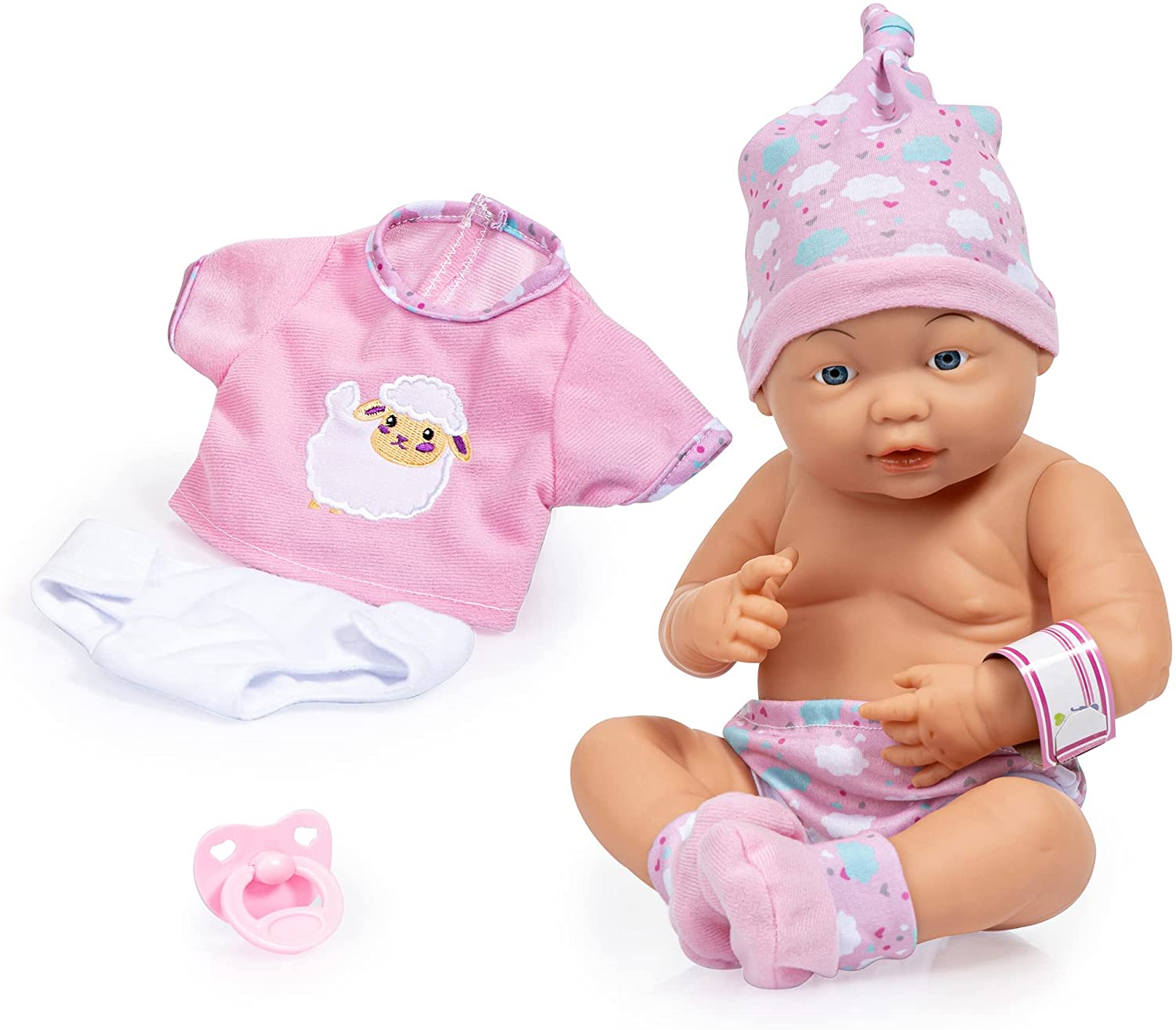 | Beschreibung | Newborn Baby 36 cm mit Zubehör Die niedliche New Born Baby Puppe ist 36 cm groß. Mit viel Liebe zum Detail wurde diese mit kleinen Falten und bezaubernden Händchen und Füssen besonders lebensecht modelliert. Das süße Outfit bestehend aus einem Oberteil, einer Unterhose, einer Mütze und Schuhen verleiht ihr darüber hinaus ein besonders liebliches Aussehen. Im Set ist auch eine genähte Windel und ein Schnuller enthalten, so dass erste Rollenspiele der Kinder verwirklicht werden können. Ferner ist die Puppe zum Baden geeignet. Durch ihre handliche Größe ist sie zudem bequem zu transportieren und kann leicht mitgenommen werden. Eigenschaften: Artikelmaße cm: 16 x 12 x 36. |