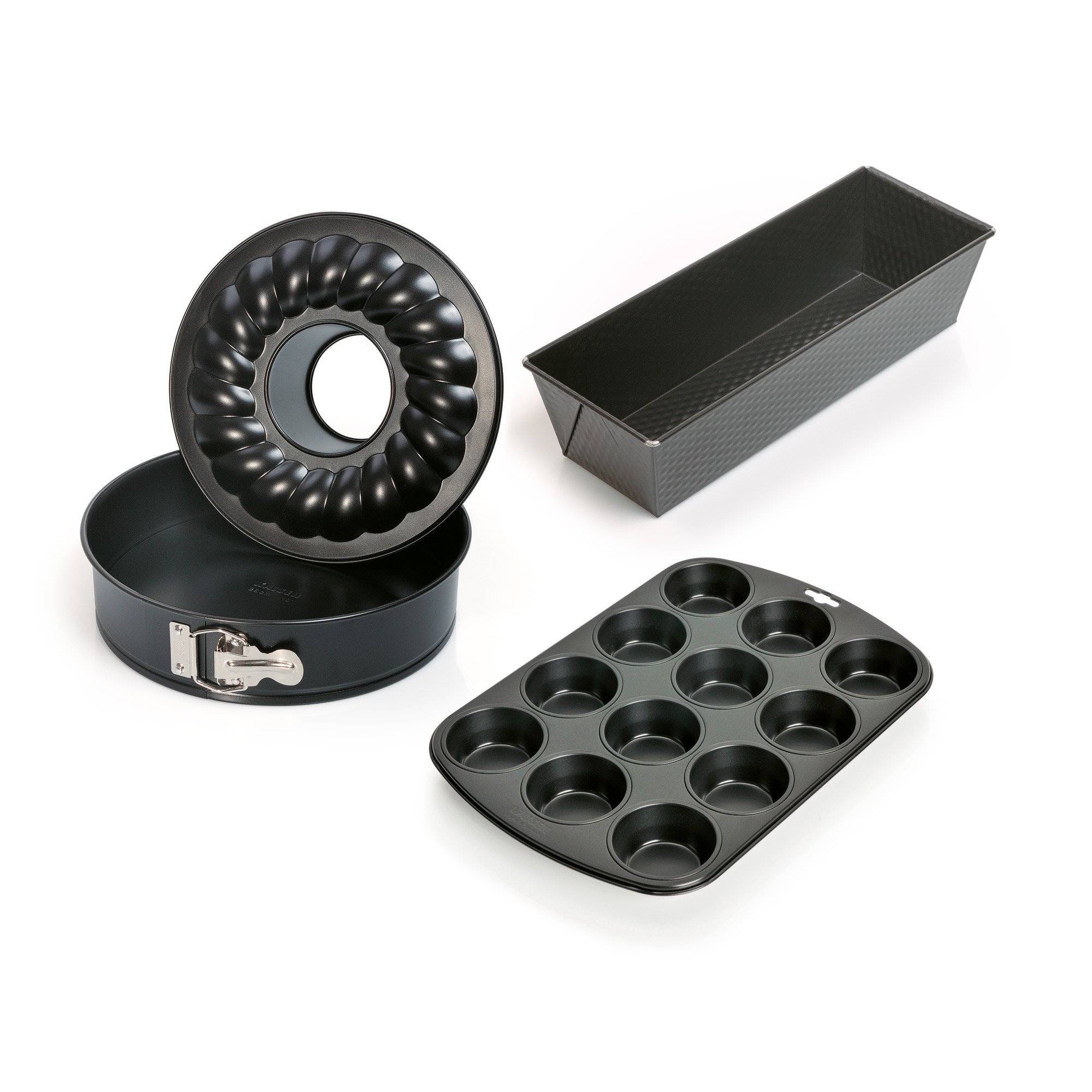 Das Set bietet eine vielseitige Auswahl an hochwertigen Backformen, die aus legiertem Stahl mit hervorragender Antihaftbeschichtung gefertigt sind. Diese Eigenschaften sorgen für eine leichte Herauslösbarkeit der Backwaren und ermöglichen eine einfache Reinigung von Hand sowie in der Spülmaschine. Zudem gewährleistet die gute Wärmeleitung gleichmäßige Backergebnisse, während die Langlebigkeit und Hitzebeständigkeit bis 230°C das Produkt besonders praktisch für verschiedene Rezepte macht.
