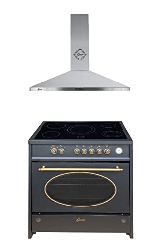 GURARI Retro Standherd 90 cm + Dunstabzugshaube 90 cmSchwarz/Edelstahl, Range Coocker, 121 L, 1000m³/h