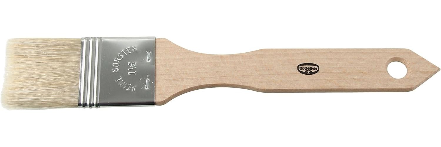 Dr. Oetker Backpinsel 1 1/2 mit Holzgriff und reinen Borsten. Farbe: naturfarben. Maße: 38 mm.