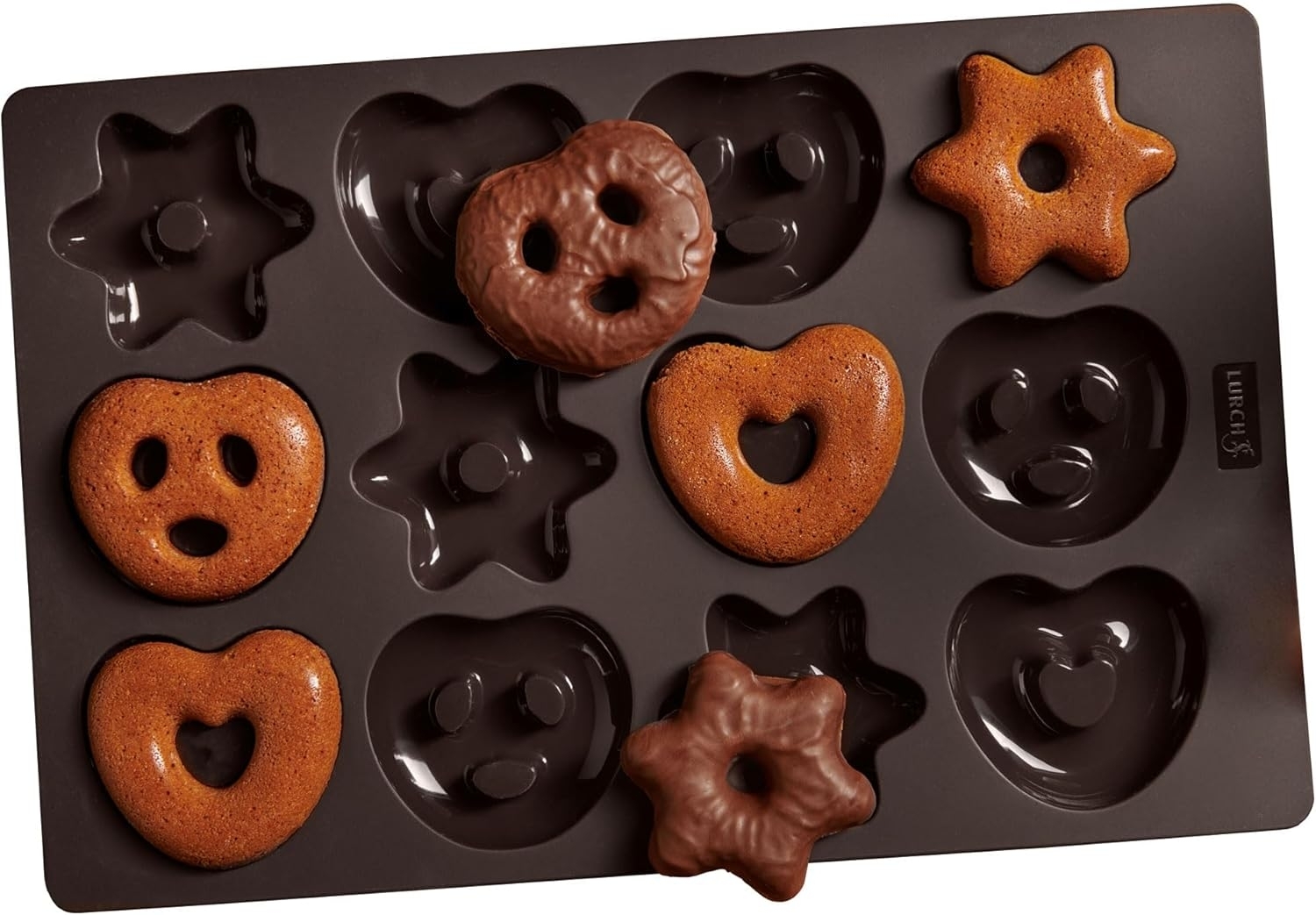 | Name | Lurch FlexiForm Backform für 12 Mini-Lebkuchen Bretzeln, Herzen und Sterne Premium-Platin-Silikon 20x30 cm |