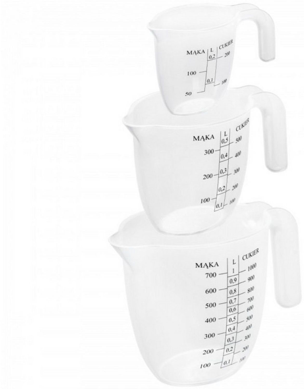 | Name | Practic Messbecher, 3er Set Küchenmessbecher mit Skala und Griff |