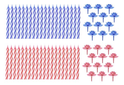 Fackelmann Kerzen20 Kerzen/12 Halter, Wachs, blau/rosa sortiert, Höhe 8,5 cm, Durchmesser 7,5 mm, 32-Einheiten