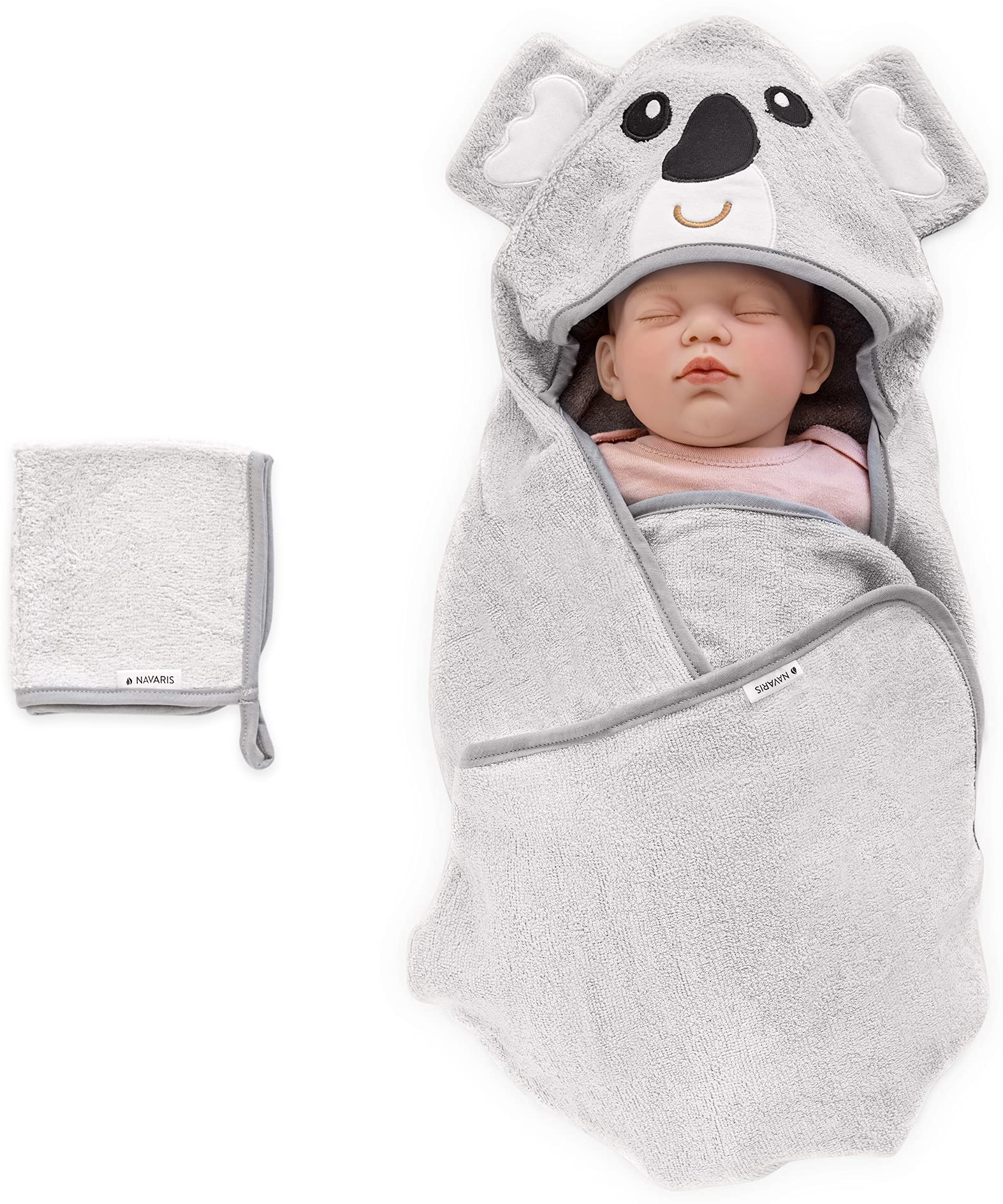 | Name | Navaris Baby Handtuch mit Kapuze und Waschlappen - Set aus Bambus - Badetuch ab 0 Monate - Kapuzenhandtuch 70x70cm Ökotex zertifiziert - Koala Design |