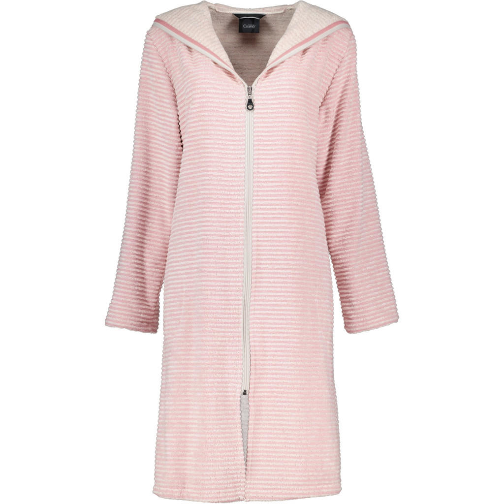 Cawoe Damen BademantelGestreift, Rosa, Leichte Frottier-Qualität mit Kapuze, Größen S-XL