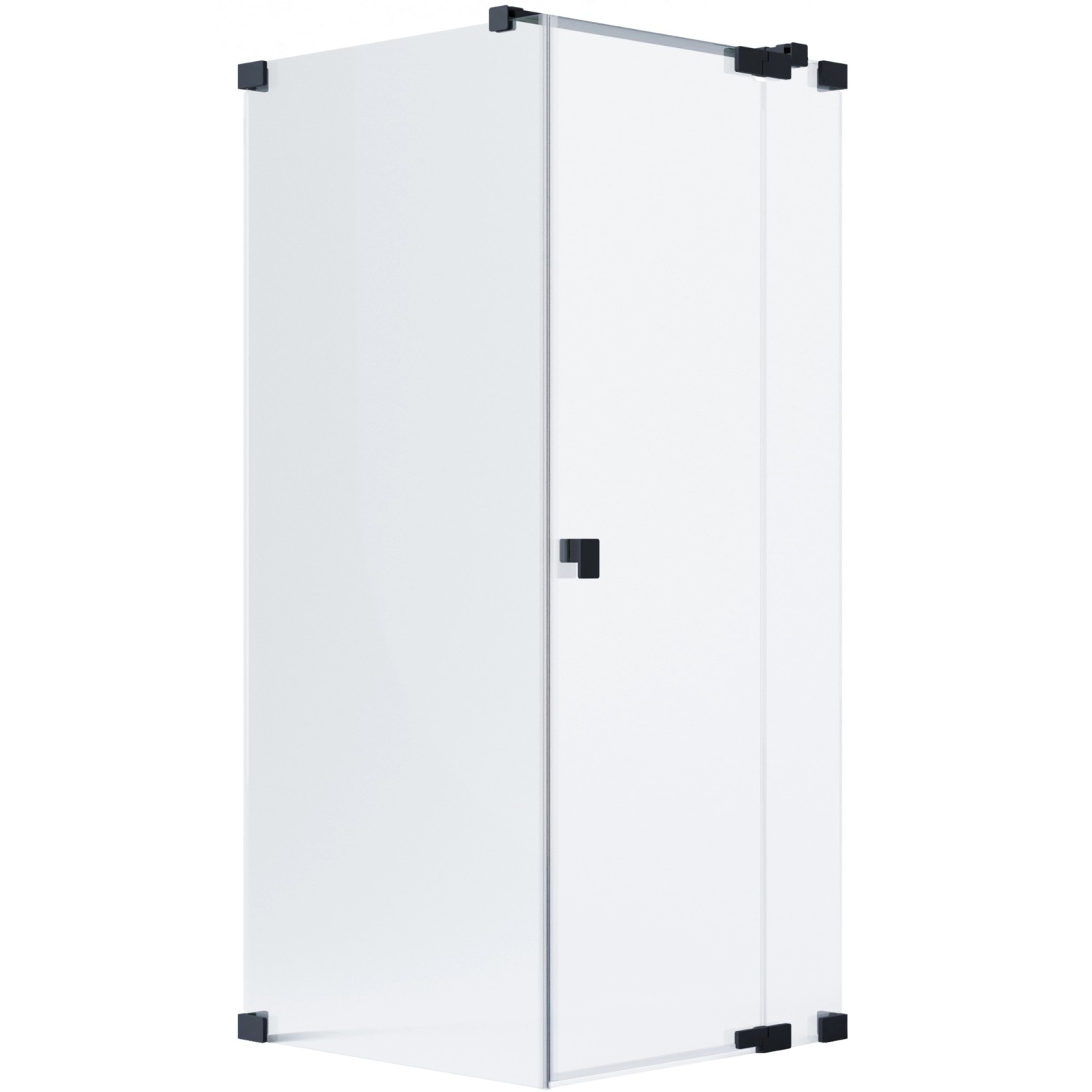Schöner Wohnen Eckdusche FitDrehtür mit Festteil und Seitenwand, Schwarz, 90x90x200 cm, rahmenlos, 8 mm ESG, pflegeleichte Nano-Beschichtung