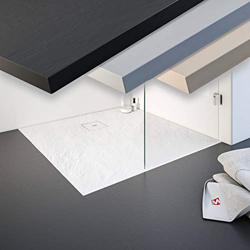Schulte Duschwanne planviele Größen und Farben zur Auswahl, Mineralguss mit Steinstruktur, 90x90 cm, Alpinweiß, quadratisch, inklusive Ablauf, EP216090 04