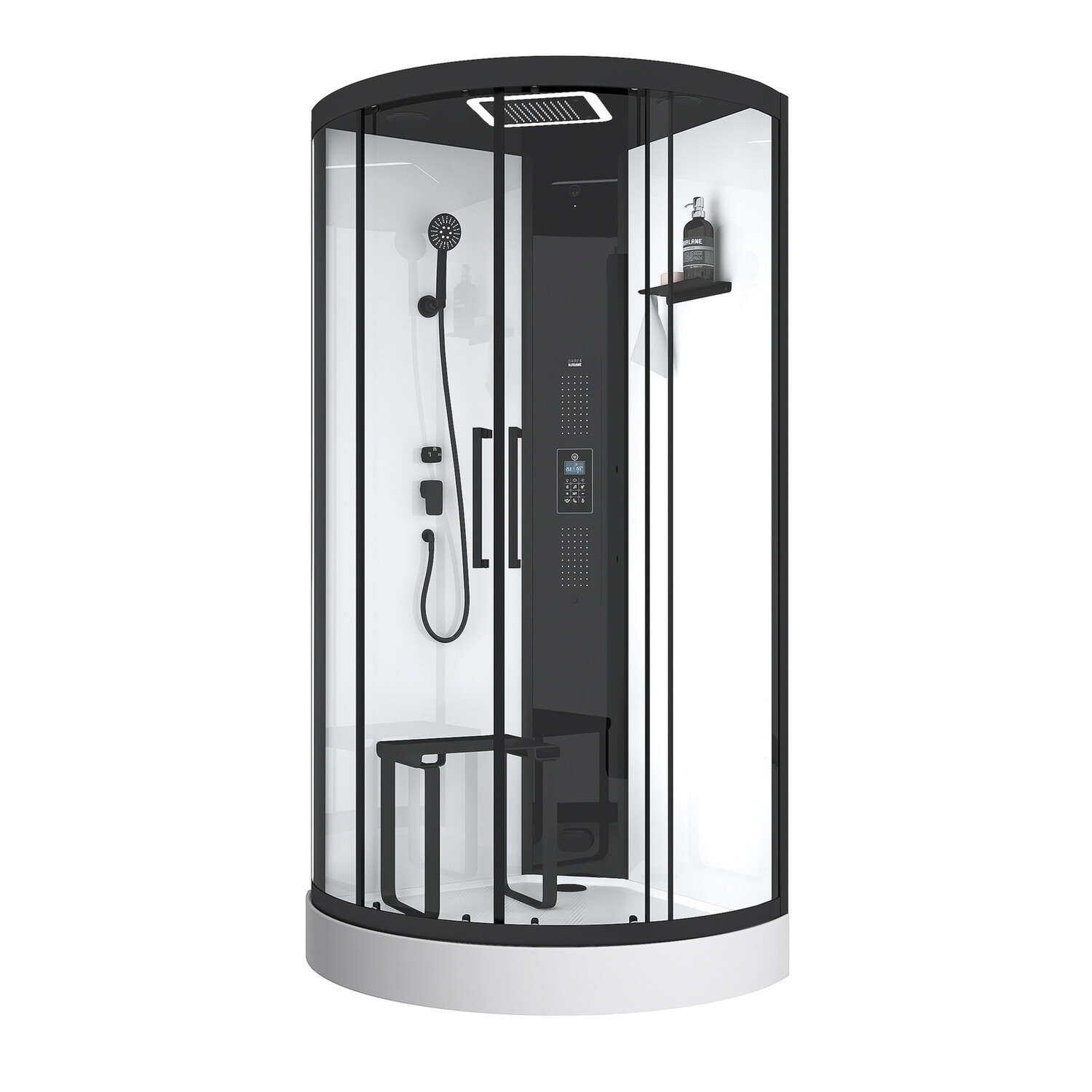 Aurlane Komplettdusche 'Relax' mit Dampffunktion 1/4-Kreis schwarz 95 x 95 x 218 cmHydromassage, Hamamfunktion, Bluetooth-/Radiofunktion und LED-Deckenleuchte