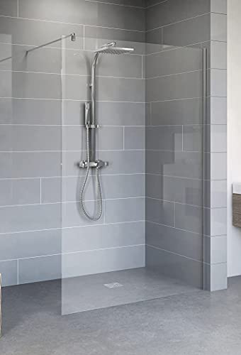 Schulte Duschwand zum Kleben120 x 190 cm, 6 mm Sicherheitsglas ESG Klar hell, Walk In Dusche, Chromoptik, Montage ohne Bohren in die Wand-Fliese