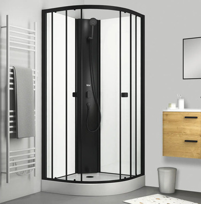 AURLANE Komplettdusche Essential Round 85 x 85 x 197 cm mit mattschwarzem Profilvollrahmen